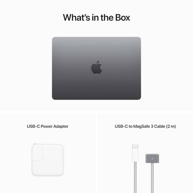 Apple MLXW3LL/A MacBook Air 13.6″ Space Gray Notebook Apple M2 Chip 8GB Unified RAM 256GB SSD (Mid 2022)MacBook Air. Redesigned. Redefined. Completely redesigned around the Apple M2 chip, MacBook Air offers improved performance and capabilities and all-day battery life in a silent, fanless design. Enjoy a gorgeous 13.6-inch Liquid Retina display, 1080p FaceTime HD camera, a MagSafe 3 port for charging, an immersive four-speaker sound system, Magic Keyboard with Touch ID, and a choice of four beautiful finishes. It’s thinner, lighter, and faster—and everything you want in MacBook Air. Key Features
